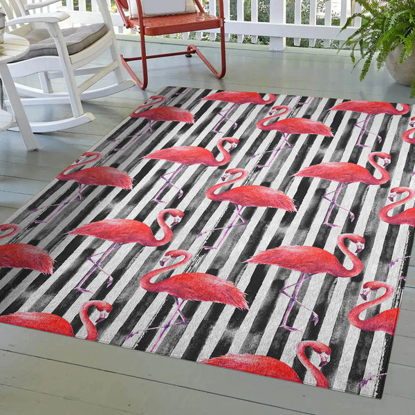 Bring playful sophistication to your space with the Tropics Black Rug—a lively blend of tropical charm and modern art. 🦩🖤